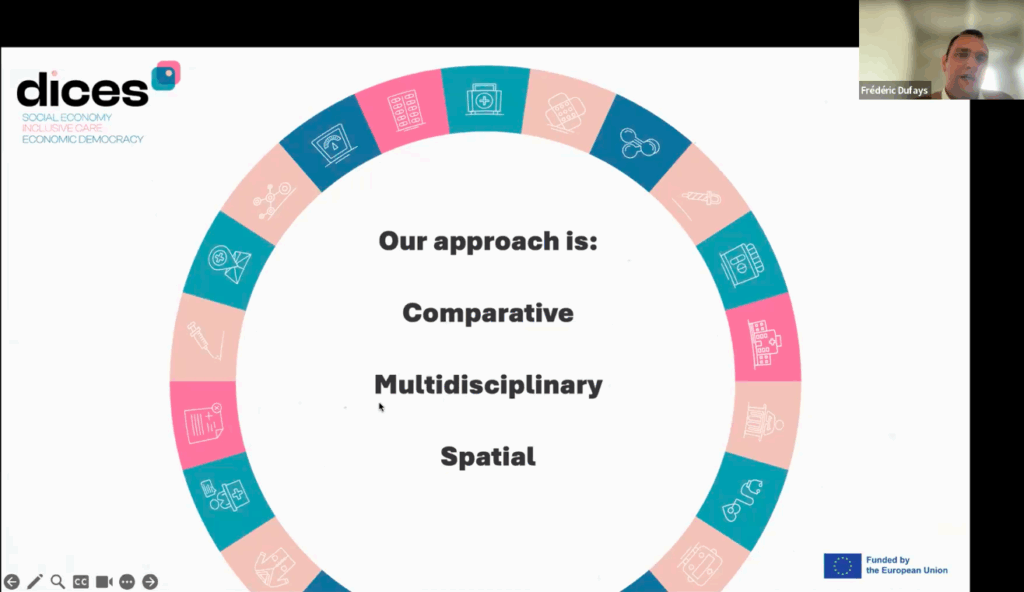 For Frédéric Dufays, KU Leuven, the webinar was also a moment to set out the structure of the DICES project. The initiative is mapping the social economy’s contribution to tackling exclusion and testing new approaches in left-behind regions. “Our goal is to understand the barriers and drivers of social economy development, and to experiment with models that can be scaled or replicated,” he explained, noting that co-design with local practitioners will be central to the work.